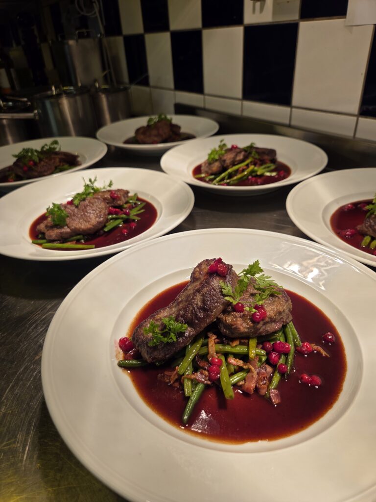 Gulaschsoppa 165:-. Pannkakor med sylt & grädde 95:-