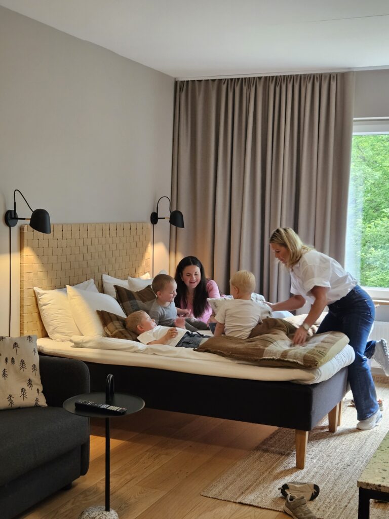 I rummet finns det 2st 90cm sängar samt en bäddsoffa på 140cm. Det finns ett utrustat pentry för 4 personer, kylskåp, kokplattor och micro. Med naturen precis utanför ert fönster sover ni gott och vaknar upp utvilade. Som gäst hos oss är du också varmt välkommen att använda vår bastu- och relaxavdelning med närhet till skogens lugn.