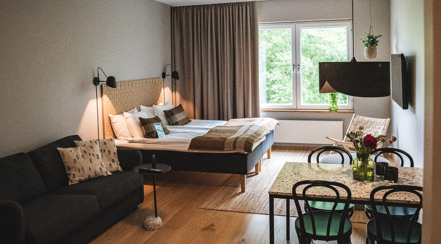 Känn er som hemma och låt lugnet smitta av sig från våra sköna dubbelrum inredda i jordnära och behagliga färger. Twin bed eller två enkelsängar. Det finns även möjlighet att ställa in en extrasäng.